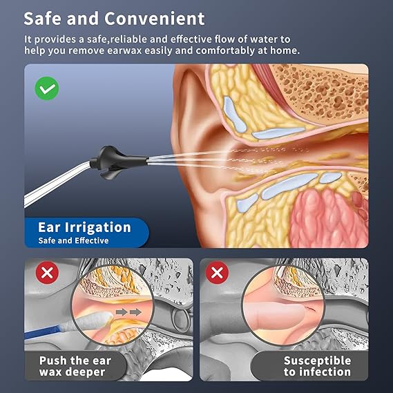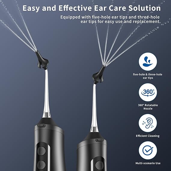 Choose the appropriate mode for your needs, including low, medium, high, and flush options. Usable in various environments, facilitating easy cleaning and maintenance  Ensures the device’s durability and low noise operation.  Features a 5C 1500mAh battery for extended use.  Piston pump technology delivers stable and strong water pressure, enhancing cleaning effectiveness. Equipment with 1500mAh can last up to 50 Days after fully charged 3hrs. The ear cleaner is about 24.1×8.4x7cm is compact and convenient tc carry around, ensuring you can enjoy clean and healthy ears when traveling or business. The sound is SO low, it seems to be only machine operation and water flow sound.